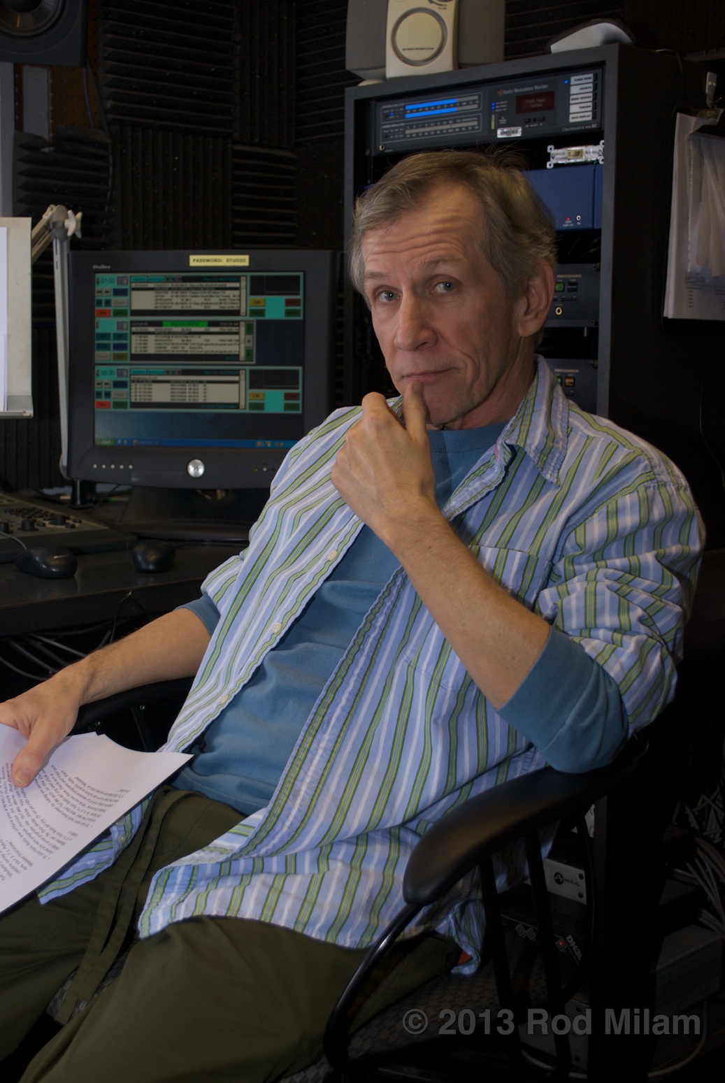 Bob McCabe looking pensive, knowledgeable, relaxed, and totally at home in “air control” at the University of Missouri St. Louis studios of KWMU in February of 2010.